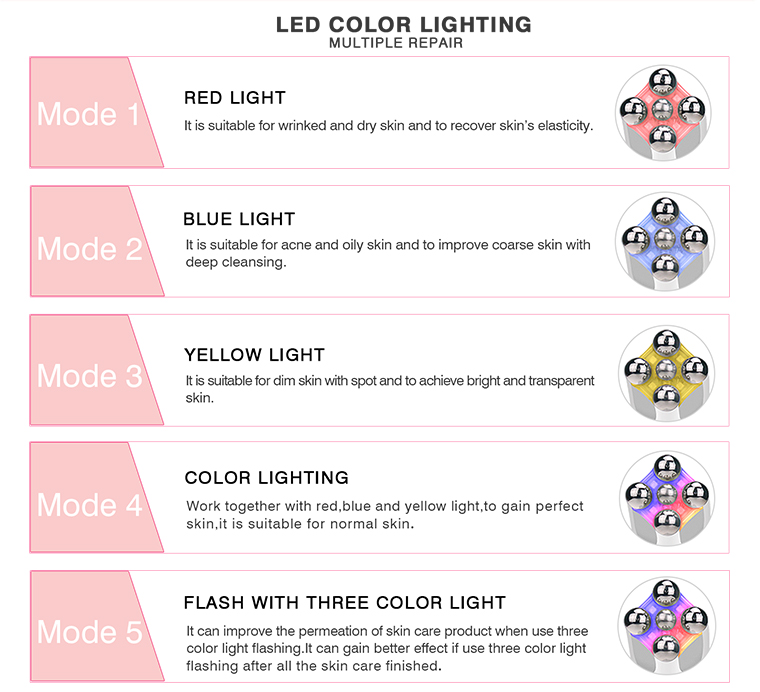 QUINS SÓN ELS BENEFICIS? -- La màquina de bellesa és un dispositiu anti-envelliment multifuncional que inclou tecnologia de radiofreqüència (RF) amb teràpia de llum vermella/blava, EMS per reduir línies i arrugues, millorar la penetració de la pell i les capacitats d'absorció, etc.