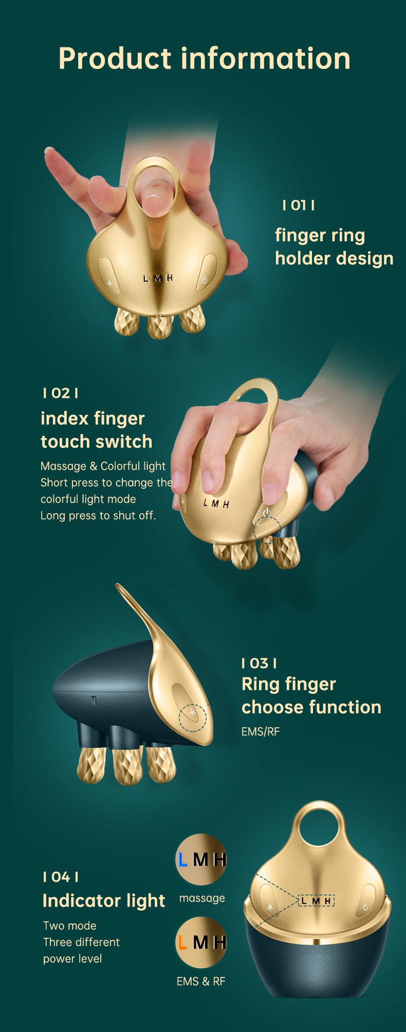 2. Massatge+EMS+RF multifuncional, 3 velocitats i intensitat regulables