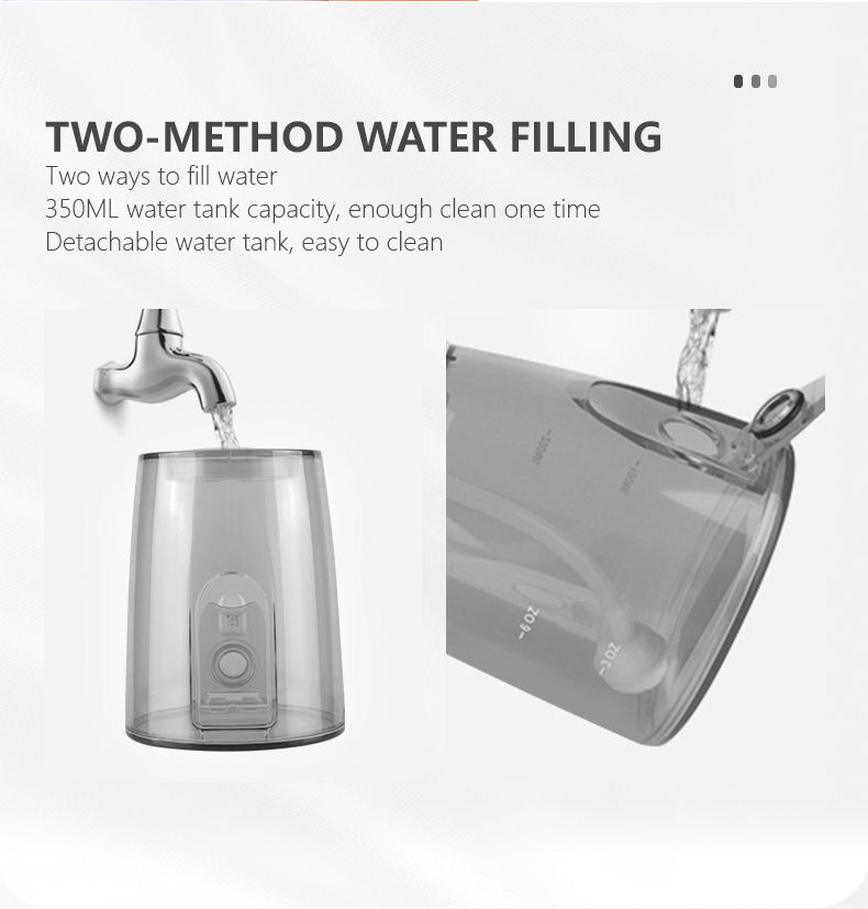 Aquest fil dental d'aigua compta amb un dipòsit d'aigua de 350 ml millorat, el doble de capacitat que altres models antics, eliminant la necessitat d'omplir-se freqüentment i fer que la neteja oral sigui més còmoda i eficient.