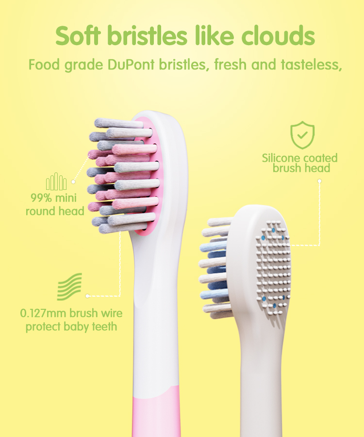 - RESPALTANT LES DENTS EMOCIONATS I DIVERTITS: bonic disseny d'animals, deixa que els teus fills s'enamoren de rentar-se les dents. Cap de raspall petit únic amb truges suaus corbes en 3D, còmode i eficient, perfecte per a les genives i la boca petita dels nens.